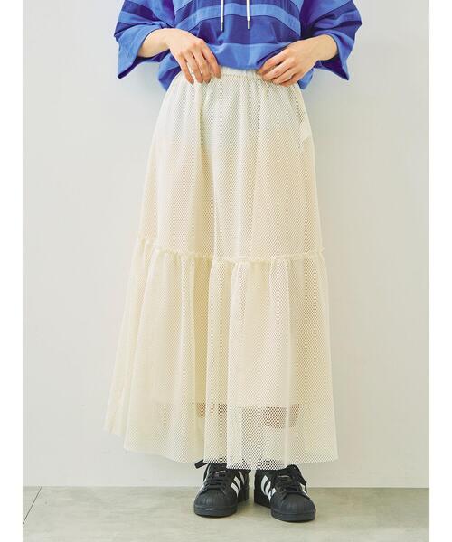 涼しげなメッシュ素材で軽やかな印象に仕上げたスカート。切り替えをほどこした裾のふんわり感も可愛らしいポイントです。ペチコートはセパレート可能なので、様々なレイヤリングのアレンジも楽しむことができます。※商品画像は、撮影環境やお客様のご利用のPC・スマートフォンのモニター環境などにより実物と色味に差異がある場合がございます。【その他採寸】 F ウエスト:[ゴム仕様]64cm ★《お気に入り登録》でお得な情報をGET★① 商品ページ内のハートマークをクリック!② 以下通知が受け取れます!「再入荷」「ラスト1点」「特別セール」etc..\ブランド、ショップのお気に入りも是非!/