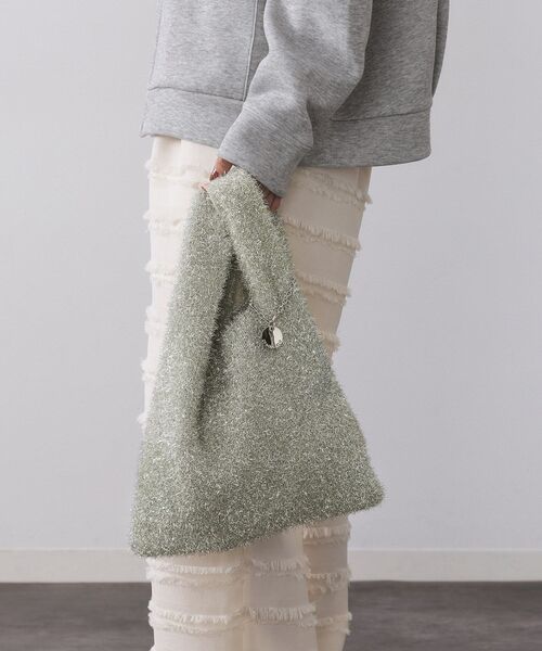 大人気!トレンド感あふれるキャッチーなラメニットバッグ今季はトレンドのブラウンと大人っぽいブラックシルバーが新色で登場!・キラキラしたフィルム糸を使用・シンプルなデザインで素材の個性を活かしたバッグ・持ち方のアレンジも可能・ブランドロゴを刻印したオリジナルのメタルチャーム付き【デザイン】トレンドのラメ系素材を使用したコンパクトなニットバッグ。キラキラしたフィルム糸を使用し、シンプルなニットバッグに仕上げました。持ち方アレンジで、両方の持ち手を持つ通常の持ち方と、片方の持ち手をもう片方の持ち手に掛けてワンハンドル風の持ち方の2通りの持ち方が可能です。持つだけでスタイリングのポイントにもなるキャッチ‐なアイテムですが、シンプルなデザインなのでサブバッグとしても使いやすくおすすめです。ブランドロゴを刻印したオリジナルのチャーム付きで、さりげない上品さをプラスしています。【仕様】・ポケットなし※照明の関係により、実際よりも色味が違って見える場合があります。また、パソコン・スマートフォンなどの環境により、若干製品と画像のカラーが異なる場合もございます。店舗へのお問い合わせ商品番号:C71-14064●製品寸法:00:高さ24.5cm 幅(上部)26.5cm 幅(下部)27.5cm マチ0cm 持ち手上がり14cm備考:重量:約155g