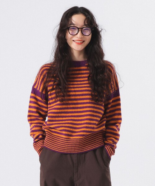 コーディネートの主役になる1着■デザイン毎シーズン大人気のボーダーニットが今年もアップデートして登場。伝統的なガンジーニットから着想を得て製作したニットは、パッと目を惹くカラー鮮やかな配色が魅力です。デイリーでの着回しに重宝する大活躍間違いなしのひと品です。■コーディネートデニムやチノパンとのカジュアルスタイルはもちろん、レースやフリルデザインなどの女性らしいデザインとも相性◎なので、スカートスタイルもおすすめです。■サイズ袖幅や袖のリブ部分のサイズ感を調整し、腕周りにゆとりを持たせたシルエットに変更。さらにリラックスした着心地で着用いただけます。■素材ふんわりとした柔らかいウール100%素材。■ケア方法ドライクリーニングのみ可(詳細は商品についている品質表示ラベルをご覧ください)Model : H164 B72 W59 H85 Size : ONE SIZE※光の当たり具合やパソコンなどの閲覧環境によって、実際の色味と異なって見える場合がございます。予めご了承ください。※商品の色味は商品単体で撮影した画像をご参照ください。