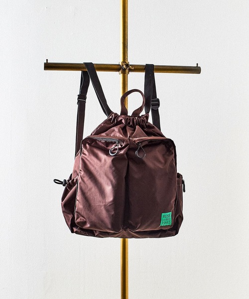 ナップサック風にも使える、カジュアル仕様の多機能バックパック・2POCKET BACKPACKよりもカジュアルな仕上がり・持ち手付きでトートのようにも使用可能・口元はギャザー仕様でナップサック風の持ち方もできる・前面の立体ポケットは大容量で使い勝手抜群・500mlペットボトル対応のサイドポケット付き・デイリー使いやレジャーに最適なデザイン・ブラック、ブラウンの2色展開スタッフレビューナップサックのようにも使えるデザインがユニークなバックパックです。ギャザー仕様の口元は開閉もスムーズで、見た目にもアクセントになっています。カジュアル感のあるナイロン素材で軽く、毎日の通勤通学はもちろん、アウトドアや旅行にも活躍します。2WAY仕様で、荷物の量や気分に合わせて持ち方を変えられるのも便利です。容量もしっかりあり、機能性とデザイン性を兼ね備えた一品です。お気に入り登録・商品のお気に入り登録再入荷・残り1点・セールの通知を受け取ることができます。・ブランドのお気に入り登録新商品・再入荷/・ショップおすすめトピックスなど、ブランドの情報を受け取ることができます。取扱注意事項モデルの着用画像の場合、光の当たり具合により、実際の色味と異なって見えることがございます。 色味は、商品生地の画像をご参照ください。