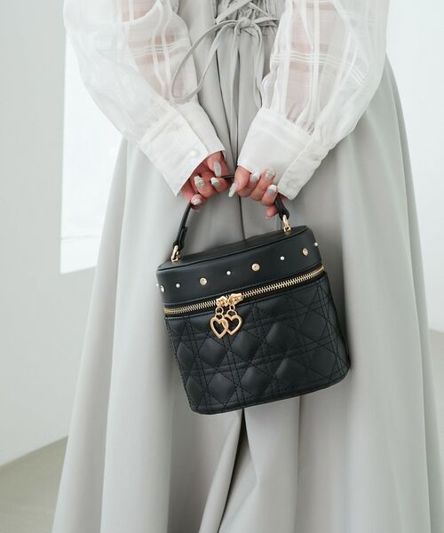 SNS映え間違いなし!360度キュートなバニティバッグ ■デザイン 上品なキルティングデザインにビジュー×パールをあしらったビジュアル力抜群のバニティバッグ。 ハートの引き手がさりげないポイントです◎ 内側にはポケットをつけ、リップなど小物も収納できます。 取り外し可能なチェーンベルトでショルダーバッグとしても2wayでご使用いただけます。 高級感のあるチェーンを用いたショルダーベルトなのでアクセサリー感覚でスタイリングに取り入れられるアイテムです。 ■サイズ感 しっかりマチがあるので財布・ポーチ・スマホ・ハンカチを入れてもまだ余裕のあるサイズ感です。 ■スタイリング お出かけはもちろん推し活などイベントにもおすすめ。 ■商品のお気に入り登録 再入荷通知やのこりわずか、お得なプライスダウンの情報も受け取ることができます。 ぜひご登録ください◎ ※サンプルでの撮影の為、製品と仕様が異なる場合がございます。 ※商品の色味は、撮影場所や光のあたり具合などにより色味が違って見える場合がございます。 また、お客様のお使いのモニター環境などにより色味が異なって見える場合がございます。 予めご了承の上ご注文下さい。