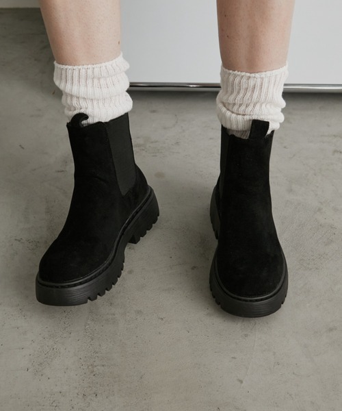 トレンドのスエード素材にアップデートされたサイドゴアブーツ ■design コーディネートの幅を狭めない、ベーシックなデザインのサイドゴアブーツ。 フラットなボリュームソールで安定感のある履き心地です。 深めのサイドゴアで、着脱しやすいのも嬉しいポイント。 カジュアルからキレイめまで幅広い着こなしに活躍してくれる、一足持っておきたいアイテムです。 ■material クラシックで洗練された印象のスエード素材を使用。 見た目よりも軽く、ストレスフリーな履き心地。 ■styling フルレングスのジーンズなどカジュアルなボトムスから、ミニボトムまで幅広いアイテムにマッチします。 パンツタイルでメンズライクに履きこなすのはもちろん、ワンピースやスカートなどのフェミニンなアイテムの外しとしてもおすすめです。 透け感:なし 光沢感:なし 伸縮性:なし 裏 地:なし 厚 み:普通 フラットソール/厚底/秋/冬 --------------------------------------------------- ▶商品のお気に入り登録 完売カラーの再入荷通知やラスト1点の通知など お得なプライスダウンの情報も受け取ることができます。 ぜひご登録ください◎ ▶ブランドのお気に入り登録 新商品や再入荷など、ブランドの最新情報を いち早くお知らせします! ぜひご登録ください◎ --------------------------------------------------- ※撮影環境の光や角度により、実物と色味が異なる場合がございます。 ※着用、お取り扱いの際は、商品に付いている品質表示を必ずご確認ください。 ※生産時期により色味・加工感など多少異なる場合がございます。予めご了承ください。