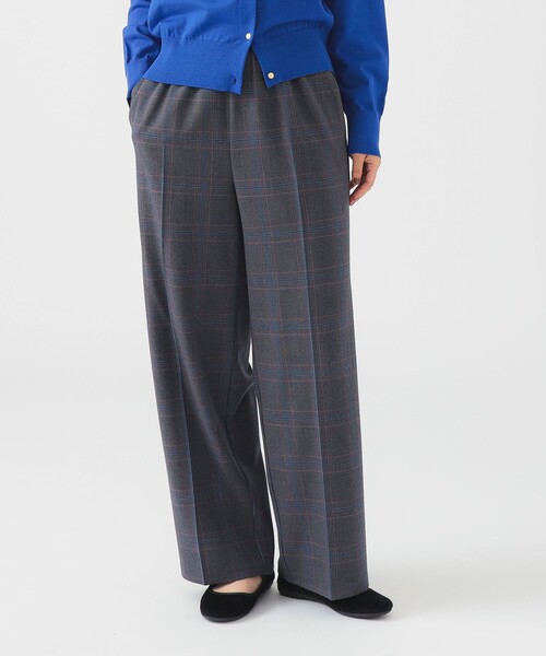 シーズンムードを盛り上げる ■デザイン ウエストがゴム仕様なのにきちんと見えする、楽な穿き心地のチェックパンツ。秋冬にあると便利な、存在感たっぷりの柄物パンツです。 ■コーディネート シンプルなニットとの相性は抜群!コンパクトで上品なハイゲージニットを合わせればお仕事用として、ざっくりとしたローゲージニットやスウェットにスニーカーでカジュアルに、と幅広く活躍します。 ■ディテール ウエストは平ゴムでぐるりと囲ったオールゴム仕様で、ストレスフリーな穿き心地。サイドポケットとヒップポケットを備えた、実用性にも富んだデザインです。 ■サイズ 程よいゆとりをもたせたワイドシルエット。SとMの2サイズ展開で、好みのゆとりをお選びいただけます。 ■素材 ウールライクなあたたかみのある中肉のフラノ風の素材を使用。柔らかい手触りとやや光沢感のあるオリジナルチェック柄です。 ※光の当たり具合やパソコンなどの閲覧環境によって、実際の色味と異なって見える場合がございます。予めご了承ください。 ※商品の色味は商品単体で撮影した画像をご参照ください。 ◆お気に入り登録のおすすめ◆ 気になる商品には「お気に入り」登録がおすすめです! 登録していただくと再入荷のお知らせやセール通知など、商品の最新情報が届きます。またマイページでいつでも確認が可能になります。 お得な情報が届くこともありますので、是非ご活用ください。