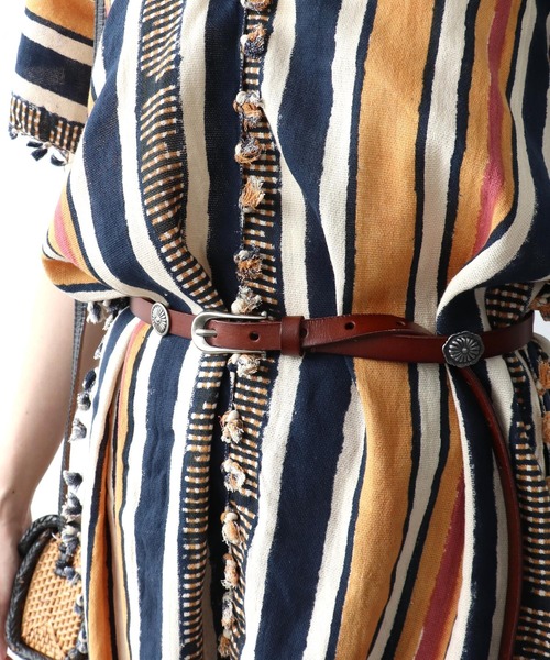 アクセントにぴったりなコンチョパーツベルトコンチョの中でも定番の2種類のフラワーデザインがあしらわれています。シンプルなコーディネートでも、このアイテムをプラスするだけで、ぐっと洗練された印象に。使いやすいブラックと、こなれ感の出るブラウンの2色展開です。
