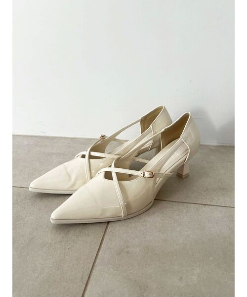 【商品】足元に程よいアクセントを加えつつ、ホールド感も高めてくれる実用的なデザインです。エナメルでフェミニンさを、スウェードでカジュアルさを気分で変えれるアソートラインナップも魅力。着脱もスムーズに行える仕様です。【スタイリング】フェミニンなワンピースやスカートと合わせれば、上品で女性らしいスタイルに。デニムやスラックスと合わせて、きれいめカジュアルにもマッチ、ソックス合わせでフェミニンに。クロスベルトが足元に程よい存在感を与えてくれるので、シンプルなコーデのアクセントにも◎。通勤からお出かけまで幅広く使える、1足持っておくと便利な万能パンプスです。※実際にお届けする商品と仕様やサイズが異なる場合がございます。また生産の都合上、お届け時期が前後する場合がございます。