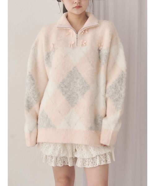 ■デザイン今期トレンドのアーガイルチェックを。微起毛ニットで淡く仕上げています〇ハーフジップ仕様でカジュアルに着こなしながらも、襟を倒してフェミニンな雰囲気への変化を楽しめる一着です。ウール混の糸なので、冬の暖かく乗り切れるアイテムとなっています。■サイズ感ゆったりしたサイズ感で腰~ヒップ辺りまでが隠れるサイズとなっています。■スタイリングミニボトムやティアードスカートとの相性が〇【商品情報】透け感:なし裏地:なし伸縮性:あり光沢感:なし生地の厚さ:厚い【商品のお気に入り登録】♡をクリック!完売カラーの再入荷や、ラスト1点の通知、セールの際の通知も受け取ることができます。【ブランドのお気に入り登録】新商品や再入荷など、merryの情報をいち早くお知らせします!ぜひご登録ください♡