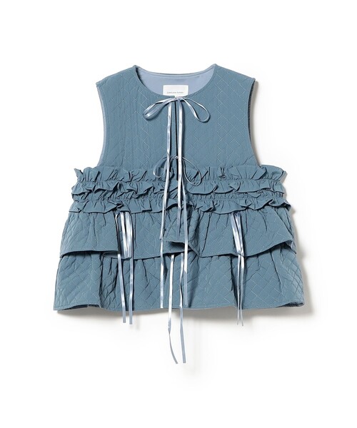 甘さを重ねた大人のためのロマンティックスタイル■デザインマットなキルティングにフリルをあしらい、華奢なサテンリボンで甘さを加えたベスト。中綿入りでウォーム感もプラスしました。■コーディネートお好みのトップスと合わせてレイヤードスタイルで、デイリーユースにも活躍します。ボトム次第でカジュアルにもガーリースタイルもお楽しみいただけます。同素材とのセットアップもおすすめです。※同素材のボトムの品番はこちらです。62-23-0070-438■サイズ程よいジャストフィットで、バランスが取りやすい丈感ワンサイズ。■素材マットな薄手のシャカシャカした素材。透け感はなく軽やかな生地に、中綿を入れキルティング加工しています。リボンはサテン素材を使用。BLACK Model : H162 B77 W60 H86 Size : ONE SIZEBLUE Model : H162 B77 W60 H86 Size : ONE SIZEBLUE Model : H174 Size : ONE SIZE生地の厚さ:やや厚手透け感:なし伸縮性:なし光沢感:なし裏地:あり※画像の商品はサンプルのため、実際の商品と「仕様」「色味」が異なる場合がございます。CAROLINA GLASER / カロリナ グレイサーシンガーでありデザイナー、同世代の女性より多くの支持を集めるインフルエンサーでもあるMEGが手掛けるブランド。2014年12月より、BEAMSがプロデュースをスタート。スタンダードなアイテムにトレンドを取り入れて、今の気分をすぐ身につけられるウェアをオンラインショップで提案。