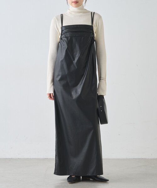 レザー調の素材感で秋らしさをプラスできるワンピース今年はレザーに注目!高級感のあるフェイクレザー素材が、大人カジュアルスタイルにぴったりな一枚。厚手過ぎない素材感で着心地軽やかで動きやすいのもポイント。裾に向かってすとんと落ちるストレートシルエットにやや長めの着丈、華奢なストラップのデザインで女性らしい一枚になっています。- - - - - - - - - - - - - - -透け感:なし裏地:なし伸縮性:ややあり光沢感:なし生地の厚さ:普通- - - - - - - - - - - - - - -※撮影環境により、光の当たり具合で色味が違って見える場合があります。あらかじめご了承下さい。※画像はサンプルの為、実際にお届けする商品と仕様が異なる場合がございます。※ドライクリーニングをおすすめいたします。※クリーニングは専門店へご相談ください。※クリーニングネットをご使用下さい。※アイロンは裏から当て布をしてかけて下さい。※この製品は素材の特性上、水分や汗により、色落ちすることがあります。ご着用の際は充分ご注意ください。※長時間日光に当たったり、摩擦、水濡れなどにより色落ちや色移りすることがあります。■「商品のお気に入り登録」でハートマークをクリックし、お好きなカラーを選んでお気に入りに登録すると入荷情報や残り1点の通知、完売カラーの再入荷、セール情報などを受け取ることができます。登録して頂いた商品だけが対象となる、あなただけのタイムセールが開催されることも!■「ブランドのお気に入り登録」で新商品や再入荷など、いち早くSHENERYのお得な情報を受け取ることができますので、ご登録をおすすめします!