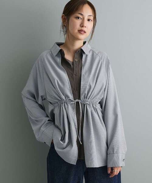 *羽織りでもトップスでも活躍。ウエストドローコードでシルエットを調整できる、着回し自在なレイヤード風シャツ。さらっとしたポリエステル混素材で軽やかな着心地。シワになりにくく速乾性があるため、デイリーに使いやすい一枚です。前ウエストのドローコードを絞れば女性らしいメリハリのあるラインに、ゆるめればラフな雰囲気にとシーンに合わせた着こなしが可能。後ろ袖にはさりげなくパイピングを施し、ディテールにもこだわりました。羽織りとしてTシャツやタンクトップに合わせれば、軽めのアウター感覚でロングシーズン活躍。ウエストを絞ってスカートに合わせればフェミニンな印象に、パンツとなら大人カジュアルに仕上がります。ベーシックカラー展開で、通勤から休日まで幅広いシーンに対応できる万能アイテムです。透け感[ややあり]生地の厚さ[薄手]光沢感[なし]伸縮性[なし]裏地[なし]ポケット[なし]※モデル着用画像は、光の当たり具合で色味が違って見える場合がございます。商品詳細画像の色味をご確認ください。※お使いのモニター環境によって商品の色味が違って見える場合がございます。 ̄ ̄ ̄ ̄ ̄ ̄ ̄ ̄ ̄ ̄ ̄ ̄ ̄ ̄ ̄ ̄ ̄ ̄ ̄▼商品のお気に入り登録がおすすめです ▼商品ページ内のハートマークをクリック。完売時の再入荷や、最後の1点の通知、最後の1点など、お得なお値下げ情報を受けとる事ができます。【お知らせ】ページでも通知が確認できます。 ̄ ̄ ̄ ̄ ̄ ̄ ̄ ̄ ̄ ̄ ̄ ̄ ̄ ̄ ̄ ̄ ̄ ̄ ̄