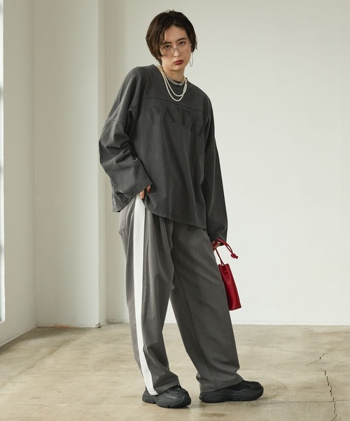 きれいめ素材のサイドラインパンツです。 ■DESIGN ・トレンド感のあるサイドラインパンツ ・25SSで人気だったアイテムを、素材を変えてアップデート ・スポーティーなデザインと、きれいめ素材の組み合わせがポイント ■FABRIC ・毛羽立ちが少なく、なめらかでハリ感のある梳毛(そもう)素材を使用 ・秋冬らしい深みのあるカラー展開 ■STYLING ・スウェットやロゴアイテムと合わせれば、全体的にカジュアルな印象に ・きれいめスタイリングがお好みの方は、シャツやジャケットと合わせても◎ ※サンプルにて撮影をしておりますので、実際の商品とは仕様や加工・サイズ等が若干異なる場合がございます。 ※屋外の光や照明の当たり具合で、実物と色味が異なって見える場合がございます。詳細画像の色味をご確認ください。 なお、商品の色や質感を出来るだけ忠実に再現するよう心掛けておりますが、パソコンなどの環境により、実物と若干異なる場合がございます。 ※写真を許可無くコピー・転用することは固くお断りします。