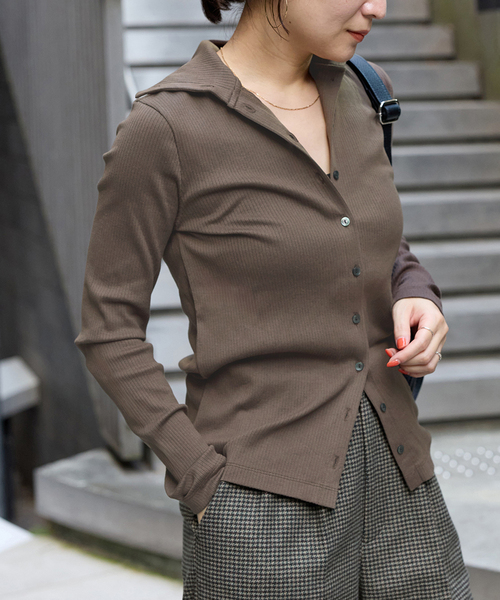 【2025AW】JOURNAL STANDARD肌さわり良いコットンベアテレコの前後ろ着用可能な襟付きカーディガン。上までボタン止めてハイネック風にも衿付きカーデ風でも後ろボタンでハイネック風でも色々な着方が楽しめます。1枚でもさまになりシーズンレスで活躍。キレイ目なハイゲージなので、お仕事シーンにも◎おすすめのレッド、シックなボーダー、定番にブラック、ブラウンといった今シーズンおすすめのカラーを生地から別注しています。※ブラウンAはボーダーです。※取り扱いについては、商品についている品質表示でご確認ください。※照明の関係により、実際よりも色味が違って見える場合があります。またパソコン・スマートフォンなどの環境により、若干製品と画像のカラーが異なる場合もございます。※商品の色味は、商品アップ画像をご参照ください。本体:手洗い可能