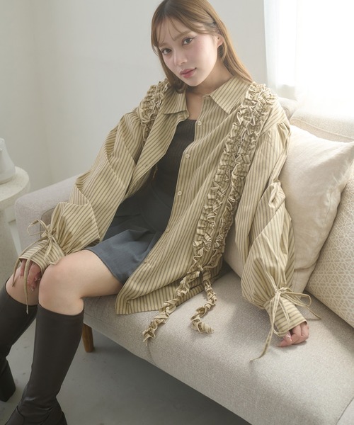一癖のあるフリルがポイント♪ ストライプ柄で大人っぽさもありつつ、袖元のリボンでかわいらしさも忘れない…♡ ■point ・ストライプ ・フリル ・一癖デザイン ・オーバーサイズ ■detail オーバーサイズのシャツチュニック。 ストライプ柄の生地と縦にドッキングされたフリルで縦ラインを強調しスタイルアップ◎ 袖元にはリボンがついていて、カジュアルになりすぎず可愛らしく着用していただけます。 ■fabric …………………… 透け感:無 厚さ:普通 伸縮性:無 …………………… ※詳しいお手入れ方法は商品タグをご参照ください。 ■coordinate ミニスカートやショートパンツを中に仕込んで頂きシャツワンピースとして着るのが一番かわいいスタイリング♪ スウェードのロングブーツやレザーアイテムなど秋らしいアイテムと合わせると一気にこなれ感でておすすめです。 脚を出すのに抵抗がある方でも、ボタンを開けて羽織としてや、デニムパンツにインスタイルでカジュアルに着るのも大人っぽい印象に。 癖のあるアイテムなので、一枚でお洒落に決まるのが楽ちん♪ Ambre Neigeとは... イマドキなアイテムにちょっとエッセンスを、、、 freedomに理想の私を叶えるブランド。 ※ご注意※ ・屋外の光や照明の当たり具合で、実際の商品の色味とカラー別画像の色味に若干の違いが発生する場合がございます。 ・詳細画像と併せてご確認の上、ご注文いただきますようお願い致します。 ※サイトに表示されているカラー名と実際のお届け商品に記載されているカラー名が異なる場合がございます。 ●お買い物をお得によりお楽しみいただく為に● ▼商品のお気に入り登録&ブランドお気に入り登録▼ がおすすめです! ♡をクリック 完売カラーの再入荷通知や、ラスト1点の通知、プライスダウンしたセール通知も受け取ることができます。 ブランドお気に入り登録もご一緒にお願い致します。 ※他のキャンペーンにより、期間中に価格が変動する場合があります。※セールは予告なく終了させていただく場合もあります。