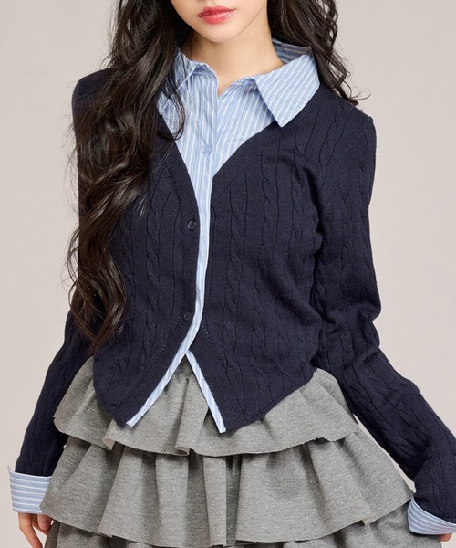 【トレンドのレイヤード風カーディガンが登場】 春らしい新色が追加!! チェックシャツと立体感のあるカーディガンをレイヤードしたデザイントップス。 これ一枚で簡単にスタイリングが決まるため、忙しい日でもおしゃれに。 カーディガンはややコンパクトなシルエットでハイウエストボトムとの相性も抜群。 ブーツに合わせて秋らしいスタイリングもおすすめです。 --------------------------------------- 生地の厚さ:あり 透け感:なし 伸縮性:なし --------------------------------------- ※サイトに表示されておりますカラー表記とお届け商品についておりますタグのカラー名が異なる場合がございますが、 実際の商品のカラーは画像と相違ございません。 ※ご覧のモニター環境や撮影環境により実際の商品と多少色味が異なって見える場合がございます。 ご理解の程よろしくお願いいたします。 【お買い物をよりお楽しみいただく為に♪】 ▼商品のお気に入り登録をおすすめします ♡をクリック! 完売カラーの再入荷や、ラスト1点の通知、 セールの際の通知を受ける事ができます。 ブランドのお気に入り登録も ご一緒にお願い致します。