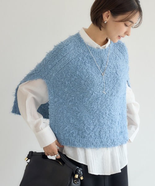【KATHARINE ROSSオリジナル】 洗練されたセットアップで、毎日のスタイルを格上げ [素材] ・本体のニットはファンシーヤーンを使用し、数種類の糸にチュールがリボン状に編み込まれた、遊び心あふれる贅沢な素材感。 ・インナーのブラウスは、程よいシボ感のある織りが特徴で、肌に優しく快適な着心地。 [デザイン] ・ニットは、特徴的なケープ型デザイン。 ・袖がなく、脇のスリットが深く入っていることで包み込まれるような独特のシルエットを演出。 ・シャツは、身体のラインを拾いすぎないゆったりとしたシルエット。 ・スタンダードな襟元は、きちんと感を演出しつつも、ボタンを少し開けることで抜け感のある着こなしも楽しめます。 [スタイリング] ・スカートやパンツと合わせるだけで、洗練されたスタイリングが楽しめます。 ・暑い時期にはニットだけを半袖のカットソーに重ねたり、ブラウスを一枚で着たり、羽織りとして活用したりと、様々な着こなしが可能。 ■光沢感:なし ■透け感:なし ■伸縮性:あり ■生地の厚さ:普通 ※照明や光の当たり具合で色味が違って見える場合があります。 ※システムの都合上、店舗より入荷が遅れる場合がございます。 <25SS Collection 25Spring&Summer> 【お買い物をよりお楽しみいただくために】 ・商品のお気に入り登録をおすすめします! ♡マーククリックで登録できます。 完売カラーの再入荷や、ラスト1点になったときの通知、 セールの際に通知などお得な情報を受けることができます。 ・ブランドのお気に入り登録もご一緒にお願いいたします! 新商品や再入荷、などいち早くブランドの最新情報をお届けします。