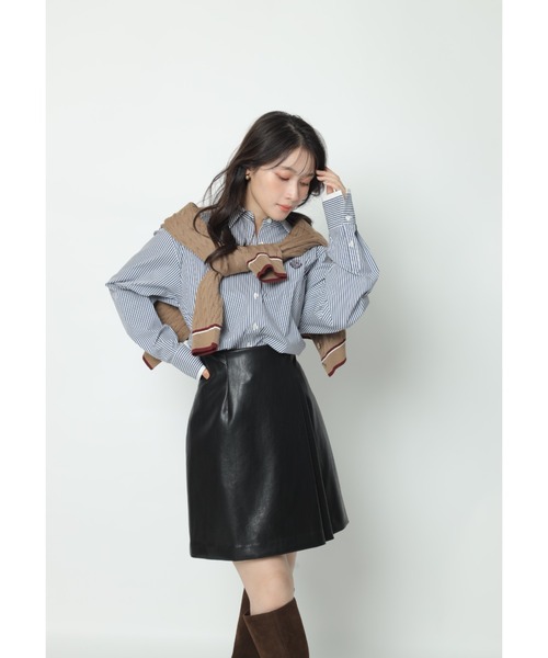 女性らしさを演出するダブルラップ風のデザインが魅力的なスカート。ウエストに施されたボタンがさりげないワンポイントになります。すっきりとした印象を与えるミニ丈のルックスが魅力。ゆとりのあるカットソーと合わせたコーディネートがおすすめです。【ご注意】※撮影照明の関係により、実際の商品と色味が異なって見える場合がございます。また、パソコン・スマートフォンなどの環境により、製品と画像のカラーが異なる場合もございます。予めご了承ください。※商品画像はサンプルのため、色味やサイズ等の仕様に変更がある場合がございますので、予めご了承ください。
