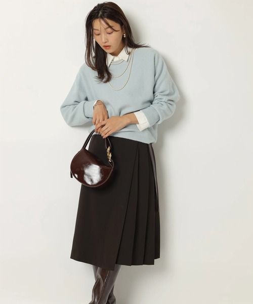 サイドのプリーツ切り替えがクラシカルな印象を与えるスカート。ミディ丈のデザインで、スタイリングに上品な雰囲気を演出します。ウエストに施されたベルトがアクセントに。シャツと合わせたシーズンらしいコーディネートがおすすめです。【ご注意】※撮影照明の関係により、実際の商品と色味が異なって見える場合がございます。また、パソコン・スマートフォンなどの環境により、製品と画像のカラーが異なる場合もございます。予めご了承ください。※商品画像はサンプルのため、色味やサイズ等の仕様に変更がある場合がございますので、予めご了承ください。