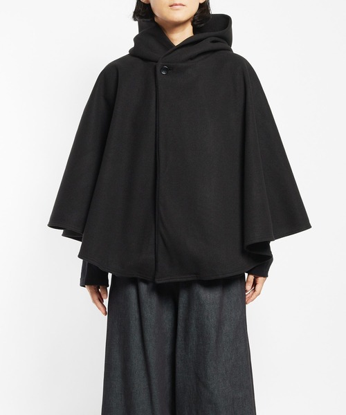 2025-26 AUTUMN&WINTER COLLECTION ■design ・一見するとポンチョのようなシルエットが印象的なフード付きアウター。 ・ふんわりと広がるラインが柔らかさを演出しつつ、実際にはしっかりと袖があり、着心地の良さと動きやすさを両立しています ・フロントにはボタンが2つあり、安定感のある着こなしが可能。 ・ポンチョ特有のずれやすさを解消しながら、羽織るだけでサマになるデザインに仕上げています。 ・内側には便利なポケットを備え、実用性も◎ ・立体的なフードやフレアに広がる裾がモードな存在感を放ちます。 ■fabric ・ダブルニットにニードルパンチ加工を施した、ウール調のテキスタイル。 ・ウールのような膨らみ、高級感がありつつも、軽量さと着心地に優れています。 ■coordinate ・ワイドパンツやスカートを合わせて分量感のあるシルエット同士を組み合わせると、リラックス感とモード感が共存する着こなしに。 ・細身のパンツを合わせるとポンチョのボリュームが際立ち、すっきりとしたバランスの良いシルエットに。 ‥‥‥‥‥‥‥‥‥‥‥‥‥‥‥‥ 厚さ:厚手 透け感:なし 伸縮性:あり 光沢感:なし ポケット:あり 裏地:なし ※詳しいお手入れ方法は商品タグをご参照ください。 ‥‥‥‥‥‥‥‥‥‥‥‥‥‥‥‥ 《お知らせ》 ・商品画像はご覧のモニター環境により、実物の色味と多少異なる場合がございます。予めご了承ください。 ・「商品のお気に入り登録」で再入荷・値下げ・在庫1点などの通知を受け取ることができます。 ・「ブランドのお気に入り登録」で新商品や再入荷など、お得な情報を受け取ることができます。 ※他のキャンペーンにより、期間中に価格が変動する場合があります。 ※セールは予告なく終了させて頂く場合もあります。