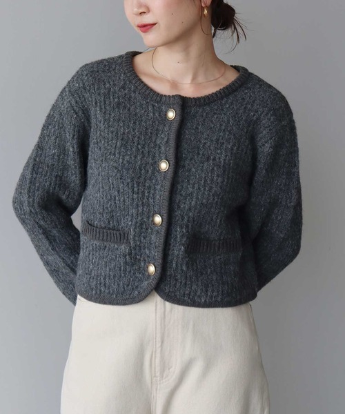 フロントのゴールドボタンがクラシカルなイメージのニットカーディガン。 丸みのあるフォルムに加え、編み地で表現したパイピングラインもこだわりのポイントです。 ゆったりとした身幅に対してコンパクトなショート丈が今年らしいシルエット。 ふっくらとした肉厚感のやさしい雰囲気でスタイリングを華やかにしてくれるアイテムです。 透け感[なし] 生地の厚さ[普通] 光沢感[なし] 伸縮性[あり] 裏地[なし] ポケット[あり] #金ボタン#ゴールドボタン#ジャケット#2025AW#クルーネック#ショート丈 ※モデル着用画像は光の当たり具合で色味が違って見える場合がございます。商品の色味は物撮りの画像をご参照ください。 ● earth music&ecology ● (アースミュージック&エコロジー) 「いいことある服。」 たかが服。されど服。波風の多い日々のなかでもほほえんで前を向くあなたを、つつんで一緒に歩きたい。 いいことあるかも。そんな期待までまとえる服をあなたに。 earth music&ecologyは、毎日を頑張る女性たちをちょっと前向きにするブランドです。 ▼ 商品のお気に入り登録がおすすめです ▼ 商品ページ内の「♡」ハートマークをクリック。完売時の再入荷や、最後の1点の通知、コーディネート画像がアップされたとき、お得なお値下げの際の通知を受ける事ができます。 【お知らせ】ページでも通知が確認できます。