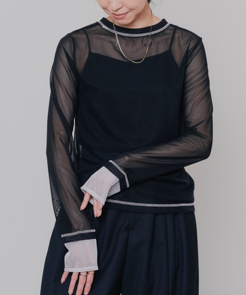-25AW|DOLLUPOOPS-快適なフィット感と、洗練されたシアー感。毎日着たい、大人のチュールトップス。【Material】しっかりとした素材のチュール生地を使用。通気性にも優れ、快適な着用感が実現できる素材が魅力です。【Design】シアー感あるチュール生地にメッシュ素材を袖にドッキングさせたデザイン。ステッチの配色とマッチしコントラストが映えます。【Size】ややフィッティングのあるシルエットですが、窮屈過ぎないゆとりもあり快適な着心地です。ミドル丈に設定しているのでインナーにも最適です。【Styling point】チュール素材を活かしたレイヤードスタイルがオススメ。ジャケットやカーディガンなど羽織物から、スウェットやシャツなどを重ね着、袖のメッシュを活かしたスタイルも様になります。___________________________★商品のお気に入り登録 完売カラーの再入荷通知や、ラスト1点の通知、セールの通知も受け取ることができます。是非ブランドの”お気に入り登録”もご一緒にお願い致します!!! ※画像の商品は光の反射や角度により、実物と色味が異なる場合がございます。 また、表示のサイズ感と実物は若干異なる場合もございますので、予めご了承ください。 ※着用、お取り扱いの際は、商品についている品質表示とアテンションタグを必ずご確認ください。-DOLLUPOOPS | ドールアップウップス-【Add a little essence】ライフスタイルの多様化が進む現代変わり続ける今をとらえ、自分らしい感性を大切にする女性に向けて" より美しく" 毎日を" 彩る" ワードローブを。日常に調和しつつ、" 普通 " に少しだけエッセンスをたして、他にない特別な一品を提案します。-Instagram-公式インスタグラム【dollupoops.tevalt_official】※商品のサイズ感やご質問は【dollupoops.tevalt_official】のインスタアカウントDMにて承っております。お気軽にご相談くださいませ。