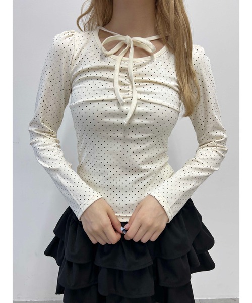 トレンドの韓国ガーリースタイルになれるカットトップスさりげなくフィットするコンパクトなシルエット控えめなパフスリーブで自然なスタイルアップ&スッキリ見え広めにとったネックにはお好きな結び方にできるチョーカー風リボン付きアクセサリーいらずの存在感です◎ごわつかないのでワンピースやベストなど、レイヤードにもピッタリ!▼便利なお気に入り登録▼商品のお気に入り登録で、再入荷の通知・ラスト1点・お得なセールの通知を受け取ることができます。ブランドのお気に入り登録で、新商品や再入荷など、さらにお得な通知を受け取れます。《Attention》・撮影はサンプル品を使用しており、実際の商品とは仕様や加工・サイズ等が若干異なる場合がございます。・撮影場所や照明の照射・角度、お使いのモニター環境により色味や仕様、加工、カラーが若干異なる場合がございます。・商品によっては1?3cm程度の採寸誤差がある場合がございます。・移染等防止のため水や汗で濡れたまま放置することは避けて頂き、濃色アイテムは単体でのお洗濯をお願い致します。・素材臭がある場合は陰干しをお願いいたします。・アテンションタグを必ずご確認の上ご使用下さい。