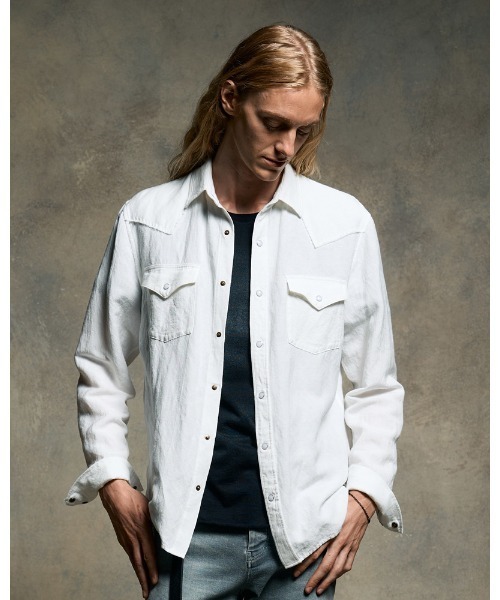 ・シンプルなダンガリーシャツ。通常よりヨークにエッジを効かせることでシャープな印象を与えてくれる。・ヨーク部分は断ち切り仕様にすることでwjkらしい粗野感を演出。・ヴィスコースリネンの混紡キャンバス素材を採用。キャンバス特有のしっかりとした素材感ながら、ヴィスコースレーヨンを混紡することでトロっとした独特の落ち感を楽しむことができる。仕上げの最終工程で生地の芯から揉みほぐすことで生地がリラックスした状態になり、ソフトでふっくらとした自然な風合いを表現している。・ジャケットやブルゾンのインナーとしても活躍するすっきりとしたサイズ感に仕上げている。柔らかなタッチと生地の落ち感も相まってシーズンで快適な着用感を得られる。<4901rl02>