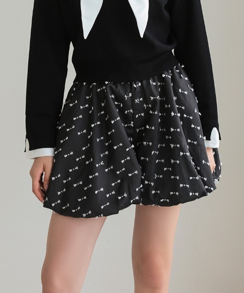 リボンバブルヘムショートパンツ■商品説明ふんわりと丸みを帯びたバブルヘムが大人可愛いショートパンツ。モノトーンのリボン織りがほどよい甘さをプラスし、シンプルなトップスと合わせるだけでコーデの主役に。張りのある生地で裾をふんわりさせたバルーンシルエットが、身体のラインをカバー。遊び心とスタイルアップを両立。前開きボタンにファスナーでウエストスッキリ見えし、ヒップ周りはふんわりシルエットのメリハリでスタイルアップ効果も。靴下×ローファー合わせや、タイツ×ロングブーツあわせで一気に秋冬ならではの大人コーデの幅が広がります。■生地感透け感:なし、裏地:あり、伸縮性:なし、ポケット:2■サイズ(cm)【OneSize】ウエスト(ゴム) 約31-40、ヒップ 約55、わたり 約40、股上 約35、股下 8.5、裾幅 約48、総丈 約44※平置き採寸のため若干のブレがございます。~*~*~*~*~*~*~*~*~*~*~*~*~*~*▼ 商品のお気に入り登録 ▼完売カラーの再入荷通知や、ラスト1点の通知、セールの通知も受け取ることができます。ぜひご登録ください♪▼ ブランドのお気に入り登録 ▼新商品や再入荷など、ブランドのお得な情報をいち早くお知らせ!ぜひご登録ください♪