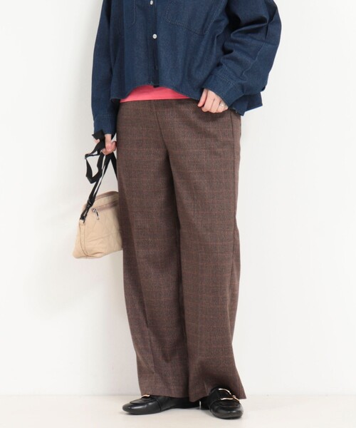 ◇25AW◇ fredy couleur 今シーズン取り入れたい、チェック柄パンツ ◆Point ・今シーズン注目のグレンチェック柄 ・やや薄手ながらあたたかみのあるウールライク素材 ・タック入りセンタープレスで美脚効果 ・程よいゆとりのセミワイドシルエット ・ウエストは総ゴムで楽なはき心地ながら、フロントはきちんと見える仕様 ・後ろのパッチポケットでヒップラインをさりげなくカバー ・きれいめにもカジュアルにも幅広く活躍 ・トレンドコーデが叶い、着回し力の高さも魅力の今季おさえておきたいアイテム ---------------------------------------------------------- 透け感:なし 裏地:なし 伸縮性:なし 光沢感:なし 洗濯:手洗い可 ---------------------------------------------------------- 気になる商品は、お気に入り登録がオススメです! クーポン情報、入荷情報が通知されるようになります ---------------------------------------------------------- ●お取扱い上のご注意● 末永くご愛用頂くために、アテンションタグを必ずご確認の上、着用又はお取り扱い下さい。 ※店頭及び屋外での撮影画像は、光の当たり具合で色味が違って見える場合があります。商品の色味は、スタジオ撮影の画像をご参照下さい。 ※商品画像に関しては出来る限り忠実に表示出来るよう努めておりますが、お客様がご利用のモニターの設定及び特性により、実際の商品と比較し色味に若干の誤差が生じる場合があります。 ※製品洗い加工の商品は、多少の歪み、シワなどが見られたり、風合いやサイズ等が1枚1枚異なります。汗や雨等で濡れた時や、摩擦により色落ちし、他の衣料を汚すことがありますので(特に濃色のもの)ご注意ください。