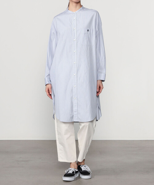 <デザイン> - 長袖バンドカラーシャツワンピース - ゆとりのあるサイズ感 - 胸に配色のグリフィン刺繍 - 両サイドにシームポケット - ラウンドヘム <素材> - はっきりとした柄と程よいハリ感のシャツ地 - 自然な光沢感 - 通年着用が可能 ※着用、お取り扱いの際は商品についておりますアテンションタグ、洗濯ネームを必ずご確認ください。 ※モデル撮影画像は、光の当たり具合やパソコンなどの閲覧環境によって、実際の色味と異なって見える場合がございます。商品の色味は商品単体で撮影した詳細画像をご参照ください。 メーカー品番:#GY-G0064 SSH Gymphlex | ジムフレックス 1936年軍用ショーツを提供し始め、スポーツウェア・ブランドとして確固たる地位を築く。現在はスポーツというシーンにとらわれず、ユニセックスのカジュアルウェアを展開している。