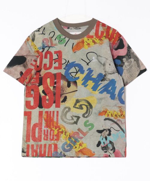 1枚1枚違う見え方です。人々を取り巻く物事のスピードが上がり、混乱が増すにつれ世界が混沌として行く様子を表したプリント。杢グレーの天竺の上にプリントしています。適度にゆとりのあるストレートなシルエットのリラックスTシャツ。