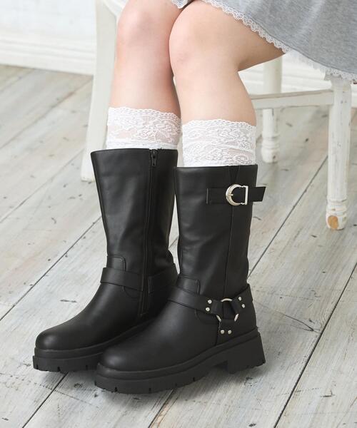【サイドにあしらったベルト&金具がスタイリッシュなバイカーブーツ】 バランスの取りやすいミドル丈で普段使いに大活躍間違いナシです。 クッション性のあるインヒール入りで脚長効果も抜群。 外側の切り込み部分にゴムを貼っているので歩きやすくなっています。 内側のジップで脱ぎはきも楽チン。 パンツに合わせたクールスタイルもおすすめです。 対応目安サイズ Mサイズ(23cm~23.5cm相当) Lサイズ(24cm~24.5cm相当) ・重量:約634g(片足Mサイズ)