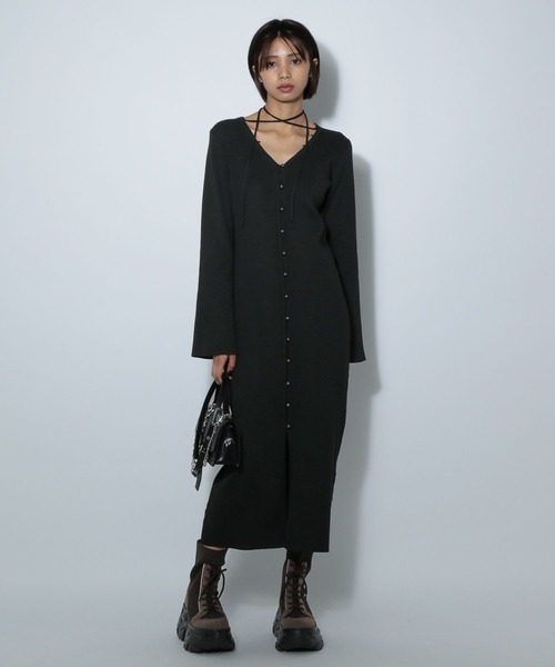 \今季のムードを高めてくれるニットワンピース/柔らかい糸を使用しているので伸縮性があり程よく体にフィットするサイズ感でボディラインをきれいに魅せてくれます。衿ぐりに取り外し可能の紐がついておりシンプルなVネックからリボンデザインまでアレンジ次第でさまざまな着こなしを楽しめます。着映えするワンピースなので1枚着としてはもちろん、ブーツやローファーなど小物で変化を楽しむのがおすすめ!肌寒い時期にはショート丈のブルゾンを合わせればスタイルアップ効果も◎〈注意事項〉・サンプルにて撮影をしておりますので、実際の商品とは素材や仕様・加工・サイズ等が若干異なる場合がございます。・モニター・環境等により実際の商品と色味が多少異なって表示される場合がございます。予めご了承をお願いいたします。・撮影環境により、光の当たり具合で色味が違って見える場合があります。あらかじめご了承下さい。▼気になるアイテムは《お気に入り登録》がおすすめです!完売カラーの再入荷情報、セール情報、ラスト1点の通知を受け取ることができます!▼《ブランドのお気に入り登録》で新商品や再入荷などのお得な情報をいち早くお知らせします。※ご注文いただいた予約商品のお届け時期の確認は、注文履歴ページより行えます。