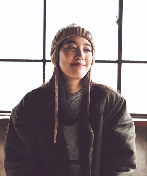 ロール状に折り返したフィット感のある浅めのデザインが特徴的なワッチ。イヤーフラップ付きで内側に収納すれば通常のワッチ、外に出すことで、耳あて付きの2WAYで使える仕様となっております。コーディネートに併せて2つの楽しみ方が出来るニットワッチです。また綿ニットですのでオールシーズン着用可能となっております。