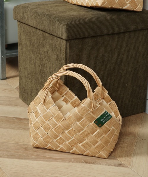置いておくだけでナチュラルな雰囲気に 柳素材の持ち手×コットンウッドのスライス材とペーパーを重ねて格子状に編んだバスケット。 見せる収納として置いておくだけで、お部屋にナチュラルな雰囲気をプラスしてくれます。 手編みの温かみと優しい風合いが魅力的なアイテムです。 形違いの商品もございます。 ■原産国:中国 ※重すぎるものは入れないでください。 ※素材の特性上、ささくれなどの個所が見られる場合がございます。お取り扱いにはご注意ください。 ※本製品には仕上がりには個体差がございます。 ーーー バスケット 収納 カゴ ーーー
