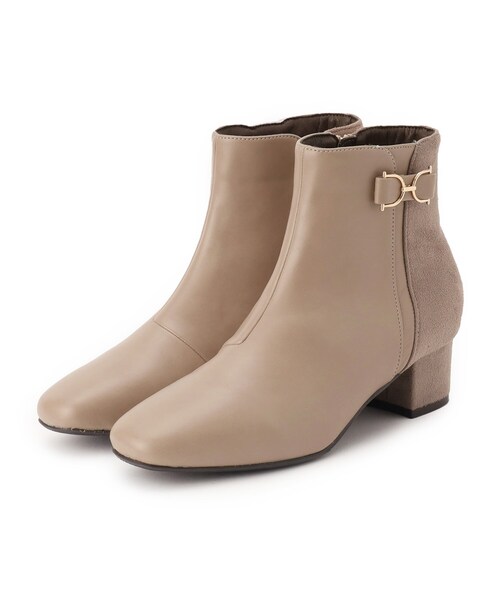 きらりとゆれるメタルビットが上品な印象のショートブーツ。【デザイン】groveの人気アイテム「ゆらリングブーツ」。メタルパーツのデザインを新たにしたNEWアイテムが登場!すっきりとした優しいスクエアトゥのデザインショートブーツ。サイドの切り替えデザインと、オリジナルで型を起こしたメタルビットの組み合わせでキレイめな印象に仕上げました。スカートでもパンツでも合わせやすい筒丈13cm。コーディネートしやすい丈感と安定感のある4.5cmヒール(リフト込)で、デイリーに使いやすいブーツです。クッションをしっかりと敷いたインソールに、アッパー内側にはジャージ素材を使用して足あたりも優しく、滑りにくいアウトソールを使っているのが嬉しいポイントです。019カラー:スムース素材143カラー/152カラー:スムース素材とフェイクスウェードのコンビ【人間工学とは】人間が可能な限り自然な動きや状態で使えるように物や環境を設計し、実際のデザインに活かす学問の一つ。groveでは、人間工学に基づき商品開発をしているアイテムをご用意しています。※照明の関係により、実際よりも色味が違って見える場合があります。また、パソコン・スマートフォンなどの環境により、若干製品と画像のカラーが異なる場合もございます。【25AW】店舗へのお問い合わせ商品番号:769-14032●製品寸法:S(23.0~23.5cm):ヒール高4.2cm 幅7.4cm ブーツ筒周り21.3cm ブーツ総丈16.3cmM(23.5~24.0cm):ヒール高4.2cm 幅7.6cm ブーツ筒周り22cm ブーツ総丈16.7cmL(24.0~24.5cm):ヒール高4.4cm 幅7.8cm ブーツ筒周り22.7cm ブーツ総丈17.3cm備考:重量:片足約265g(サンプルサイズ)