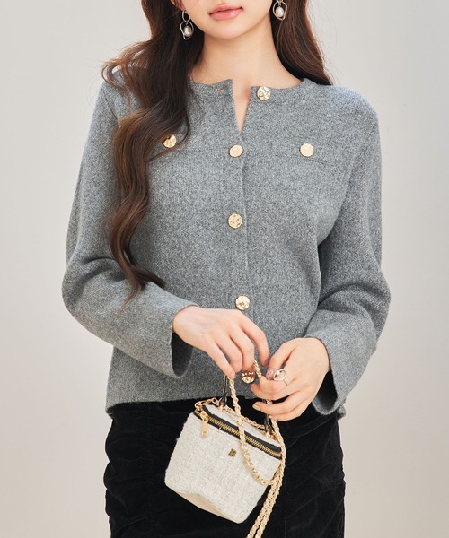 かっちりきれいめにスタイルまとまるノーカラーのショート丈ニットカーディガン。■ジャケットライクなきちんと感スカートやハイウエストのボトム、ワンピースなど様々なアイテムと相性良く着られるショート丈のニットカーディガンです。少しハリのあるニット地でなので、ノーカラージャケットのようなきちんと感のあるコーデにまとまります。オフィスシーンやちょっとしたオケージョンにもきられるきれいめニットです。■ゴールドボタンが印象的フロントボタンは存在感のあるゴールドのボタンで華やかに。ディテールのデザインがスタイル全体の高見えに一役買います。■フェイクポケットでスタイルアップ胸元にあしらわれた箱ポケット風のポケット口飾りが、バストトップを高めに印象付け、スタイルよく見せます。前ボタンと同じゴールドのボタンを添えて、華やかさもプラス。✼••┈┈┈┈••✼••┈┈┈┈••✼✼••┈┈┈┈••✼••┈┈┈┈••✼― 素材 ―ポリエステル97% ポリウレタン3%― COLOR ―チャコール, ブラック, ベージュファスナー:なし裏地:なし透け感:なし生地の厚さ:普通生地伸縮性:あり✼••┈┈┈┈••✼••┈┈┈┈••✼✼••┈┈┈┈••✼••┈┈┈┈••✼▼同シリーズのアイテムこちら▼ Vネックのショート丈ニットカーディガン問い合わせ番号:101482276(ZOZO)sdp8092b(店舗)【もっとお買い物をお楽しみいただくために!】▼お気に入り登録がオススメ!★商品のお気に入り登録→【カートに入れる】右側の♡をクリック完売商品の再入荷やラスト1点の通知、セール開始時にお知らせ!★ブランドのお気に入り登録→ブランドタグのページからお気に入りをクリック新商品や再入荷など、ブランド最新情報をいち早くお知らせ!是非、ご活用いただきお買い物をお楽しみください◎