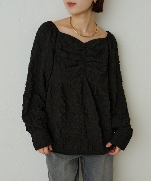 女性らしさにこだわったハートネックブラウス ・胸元のデザインと凹凸のある素材がアクセントになるハートネックブラウス。 ・首元のスクエアデザインが鎖骨ラインを綺麗に見せてくれるのも嬉しいポイント。 ・気分やスタイリングによってオフショルダーにも着用可能。 ・ふんわりとした袖と腰回りを隠してくれる丈感で体形カバー効果も◎ ・スカート合わせで甘めなスタイリングはもちろん、パンツ合わせでカジュアルな着こなしもおすすめです。 ・透け感:ややあり ・裏地:なし ・伸縮性:なし ・生地の厚さ:薄手 ・光沢:なし ・ポケット:なし 〈洗濯方法〉手洗い可能 -------------------------------------- 【商品のお気に入り登録】 ♡をクリックで気になるアイテムをお気に入り登録していただくと、 以下の通知を受け取ることができます。 ・入荷 ・再入荷 ・ラスト一点 ・セール対象時 【ブランドのお気に入り登録 】 新商品や再入荷、セール、クーポン配布などお得な情報を受け取ることができます。 -------------------------------------- ※画像の商品はサンプルです。実際の商品と仕様、加工が若干異なる場合があります。 ※カラーにより糸の風合いが異なるため、個体差が生じる場合がございます。 ※商品の色味は、撮影場所や光の当たり具合などにより色味が異なって見える場合がございます。 また、お客様のお使いのPC・スマートフォン等のモニター環境などにより色味が異なって見える場合がございます。予めご了承の上ご注文ください。