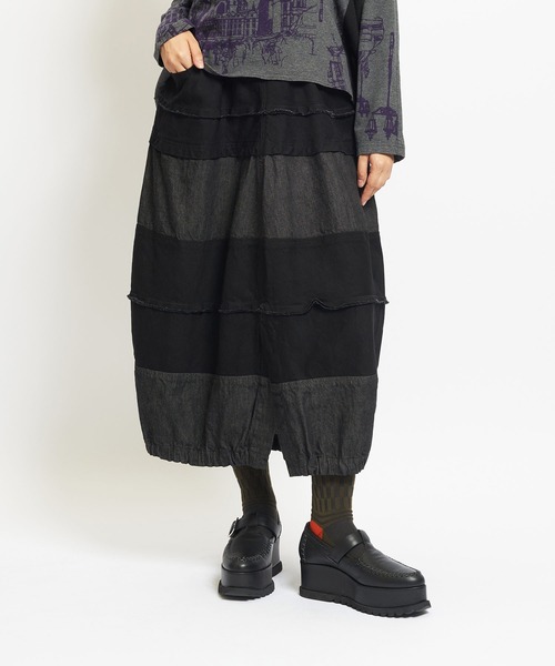 2025-26 AUTUMN/WINTER COLLECTION ■design ・大胆な切替デザインが目を引くデニムスカート。 ・柔らかな風合いのデニム生地を使用し、ゆったりとしたシルエットで快適な履き心地を叶えました。 ・裾にはゴムを入れ、丸みのあるバルーンシルエットを演出。 ・歩きやすいよう、深めのスリットをデザイン。 ・体型をさりげなくカバーしながら、スタイリングに動きを与えてくれます。 ・ウエストは総ゴムでリラクシーに着用できます。 ・モード感と遊び心を兼ね備えたアイテムです。 ■fabric ・絶妙な厚みで、シャツやパンツなど幅広く利用することが可能なテキスタイル。 ・オールシーズン着用でき、色落ちが少ないことが特徴。 ■coordinate ・シンプルなトップスを合わせても存在感のあるスタイルに。 ・カーディガンを合わせてカジュアルかつ上品に。 ‥‥‥‥‥‥‥‥‥‥‥‥‥‥‥‥ 厚さ:厚手 透け感:なし 伸縮性:なし 光沢感:なし ポケット:あり 裏地:なし ※詳しいお手入れ方法は商品タグをご参照ください。 ‥‥‥‥‥‥‥‥‥‥‥‥‥‥‥‥ 《お知らせ》 ・商品画像はご覧のモニター環境により、実物の色味と多少異なる場合がございます。予めご了承ください。 ・「商品のお気に入り登録」で再入荷・値下げ・在庫1点などの通知を受け取ることができます。 ・「ブランドのお気に入り登録」で新商品や再入荷など、お得な情報を受け取ることができます。 ※他のキャンペーンにより、期間中に価格が変動する場合があります。 ※セールは予告なく終了させて頂く場合もあります。