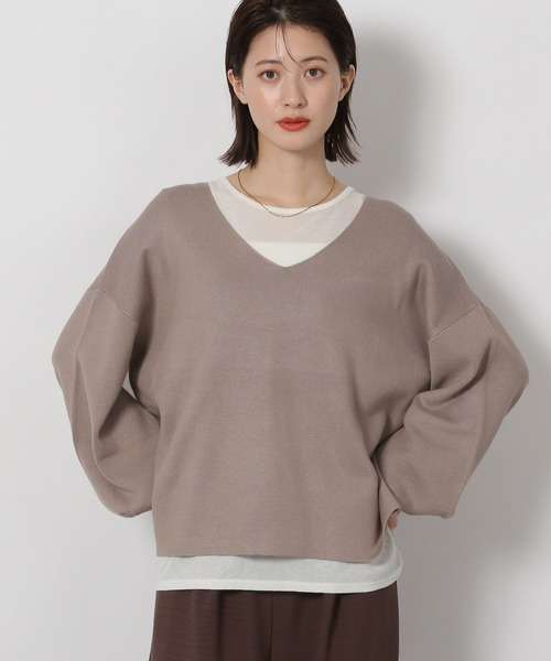 デコルテを綺麗に見せてくれるVネックデザインのニットトップス。身幅が広いので締め付けなく着用いただけ、ややリーズなシルエットを楽しめます。袖口リブ+ボリュームのある袖はニュアンスのつけやすさも〇【素材】フラットな表面感のミラノリブ生地。滑らかな質感で上品な雰囲気のニットです。【スタイリング】合わせるボトムを選ばずスタイリングできるアイテムです。インにカットソーやシャツを入れたスタイリングもおすすめ。