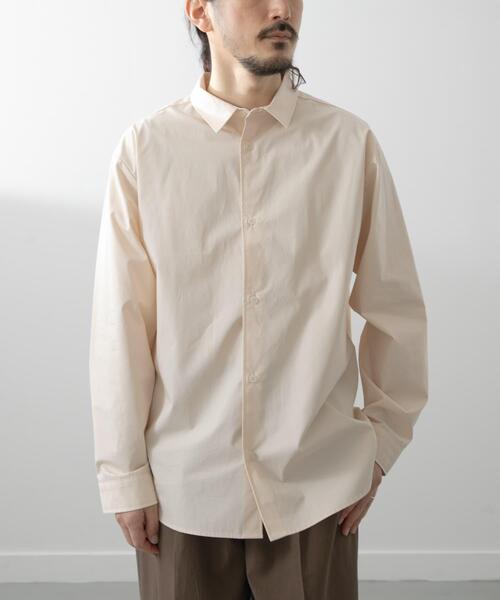 張りのある生地感が魅力のクリーンなレギュラーカラーシャツ。綿100%のしっかりとした素材を使用し、上品でありながら程よいハリ感が洗練された印象を演出。シルエットの美しさが際立つ一着で、定番のベーシックカラーに加え、鮮やかなブルーを揃え、どんなコーディネートにも馴染みながらさりげなくアクセントを添えます。暑さを残す季節から秋にかけては羽織としても活躍し、軽やかにスタイリングの幅を広げます。シンプルで上質な着こなしを楽しみたい方におすすめの一枚です。【2025 Autumn/Winter】【25AW】※洗濯方法 : 洗濯機洗い可, ドライクリーニング※商品画像は、光の当たり具合やパソコンなどの閲覧環境により、実際の色味と異なって見える場合がございます。予めご了承ください。※商品の色味の目安は、商品単体の画像をご参照ください。▼お気に入り登録のおすすめ▼お気に入り登録商品は、マイページにて現在の価格情報や在庫状況の確認が可能です。お買い物リストの管理に是非ご利用下さい。素材感透け感 : ややあり(IVO)伸縮性 : なし裏地 : なし光沢 : なしポケット : なしML