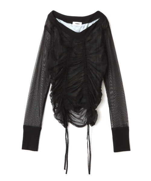 シースルー素材のギャザーがポイントのトップス。 前身頃のギャザーはドロストでギャザー分量を調節出来ます。 迷彩柄が下で透けて見えるタイプと、迷彩柄のシースルーの柄アソート展開が可愛いです。 シースルー素材、インナーのタンクトップの素材もストレッチが効くので、着心地も抜群です。 モデル身長170cm 【素材】 表地 : ポリエステル 95%,ポリウレタン 5% / 裏地 : ポリエステル 95%,ポリウレタン 5% / リブ部分 : ポリエステル 60%,レーヨン 32%,ポリウレタン 8% 【原産国】中国 品番 : 25fw-tals01-gry / 25fw-tals01-blk / 25fw-tals01-cam _______________________________________________________ お気に入り登録して最新情報を手に入れよう! ・商品のお気に入り登録 お気に入りアイテムの在庫ラスト1点、再入荷、セールなど商品情報をお届け ・ショップ・ブランドのお気に入り登録 ショップ限定商品や新商品などの最新情報をお届け _______________________________________________________