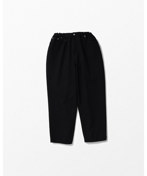 ■バックポケットペイントのイージーデニムパンツ。バックポケットにブランドアイコンのペイントが入る一本です。軽さと柔らかさが特徴的な10ozの弱ムラデニムを使用し、シルエットはテーパード。ウエストゴム・紐仕様で、リラックス感のあるイージータイプのデニムパンツに仕上げられています。