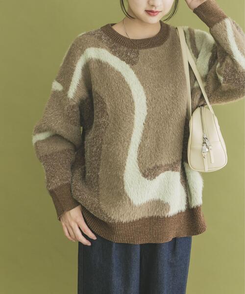 個性をさりげなく主張する、フェザージャガードニット。 オーバーサイズシルエットで体型を自然にカバーしつつ、フェザージャガードの大胆な柄が目を引く一枚。ゆったりとした着心地でリラックス感がありながらも、デザイン性の高さでコーディネートの主役にぴったりです。シンプルなボトムと合わせるだけで、大人カジュアルのこなれた印象を簡単に作り出せます。着るだけでおしゃれな存在感を放つニットです。 【2025 Autumn/Winter】【25AW】 ※この商品は、デリケートな素材を使用しております。着用中の摩擦やベルトやバッグなどによる過度な摩擦により、多少の毛抜けや毛羽立ちが生じ、毛羽が付着することがあります。 ※長時間強い日光や照明を受けますと、変色するおそれがあります。 ※その他お取り扱いに関しましては、商品に付属のアテンションタグをご覧ください。 総重量 : 約570g ※商品画像は、光の当たり具合やパソコンなどの閲覧環境により、実際の色味と異なって見える場合がございます。予めご了承ください。 ※商品の色味の目安は、商品単体の画像をご参照ください。 ▼お気に入り登録のおすすめ▼ お気に入り登録商品は、マイページにて現在の価格情報や在庫状況の確認が可能です。 お買い物リストの管理に是非ご利用ください。 素材感 透け感 : なし 伸縮性 : ややあり 裏地 : なし 光沢 : なし ポケット : なし FREE
