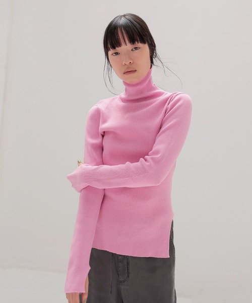 ■DESIGN DRESSLAVE定番のタートルニットに、今年は脇裾と袖口へカーブカッティングのアクセントをプラス。 脇裾のカーブが腰回りをすっきりと見せ、インスタイルでももたつかず美しいシルエットを実現。 アクセントカラーにはフレッシュなピンクとブルーをご用意。 鮮度の高い差し色が、ジャケットやブルゾンのインナーとしても華やかに映えます。 --------------------------- 透け感:なし 裏地:なし 伸縮性:あり ケア方法:手洗い可 ※お洗濯の際は洗濯表示を必ずご確認ください。 ---------------------------