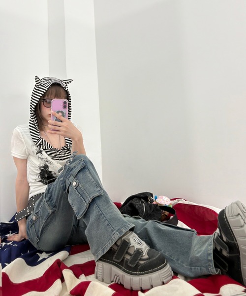 ▪アイテムポイント トレンドの韓国ストリート×Y2Kスタイル。この秋、持っておきたいのはこの1枚! 脚のシルエットを拾いすぎない脚長効果ありのフレアシルエットのカーゴデニムフレアパンツ☆ 一般的なフレアデニムより丈が長すぎないので、厚底スニーカーやヒールだけでなく、 フラットシューズのスニーカーにも合わせいやすいアイテム☆ デイリーに取り入れやすい+トレンド感もあるカジュアルからストリート・グランジのジャンル問わずスタイリングを楽しめる☆ コットンベースだが、ポリエステルが入っておりシワになりにくい 更にポリウレタンがストレッチ性のある履き心地抜群のデニムパンツを演出☆ ※着用画像はフラッシュの加減で実際の製品と色味等が異なる場合がございますので、詳細のズームアップ画像をご確認ください。 ※サイズは、測定方法と測定者によって誤差があります。素材に応じて1cm~3cmまでの差も生じます。予めご了承ください。 【NMTXU/エヌエムティーエックスユー】 ブランド名はNever mind the XUの頭文字をとったものでオリジナルの商品になります。 【Never mind the XU/ネバーマインド ザ エックスユー】 東京、大阪、名古屋、福岡にショップを構えるセレクトショップ "Never mind the XU"(ネバーマインドザエックスユー/エックスユー)と”DOG"(ドッグ)のバイヤーがシンプルからハードまで、多彩なデザインを韓国、中国をはじめとしたアジアや世界中からピックアップしたXU SELECT。 ユニセックス、ジャンルレスなデザインにこだわったアイテムがリーズナブルな価格で手に入ります。 ストリート、モード、カジュアル、綺麗目、シンプル、リラックススタイルなど様々なスタイリングをお楽しみいただけます。 “自分らしさ” の表現が必ず見つかる。そんなラインナップで一期一会の高揚を感じながらお買い物をお楽しみください。 【気になる商品はお気に入り登録がおすすめ】 ▼商品をお気に入り登録!(♥マークをクリック) 完売商品の再入荷やラスト1点の通知、セール開始時にお知らせ! ▼"XU/Chikashitsu+"をお気に入りブランドに登録! 新商品や再入荷など、ブランド最新情報をいち早くお知らせ! 是非、ご活用いただきお買い物をお楽しみください◎