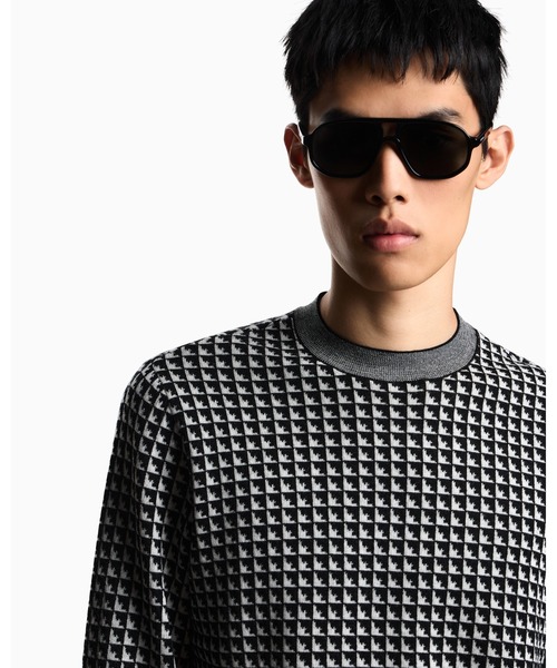 ピュアバージンウールのクルーネックセーター。ジャカードでユニークなオールオーバーのチェックモチーフをあしらい、アイコニックなコントラストカラーのイーグルを連ねて、個性的なオプアートのパターンを描き出しました。繊度:14 / ニット / ジャカードファブリック / オールオーバーイーグル / クルーネック / 長袖 / 袖口と裾はリブニット▶お気に入り登録:ハートマークをクリックして、入荷情報・再入荷・セール情報を受け取れます。【EMPORIO ARMANI ブランド紹介】1981年にイタリア、ミラノで誕生。デザイナーはジョルジオ・アルマーニ。イタリア語でエンポリオとは「あらゆるものが手に入る大きな市場」という意味。着心地と自由な発想を大切にしながら、都会的で洗練されたアイテムを提案しています。※こちらはジョルジオ アルマーニ ジャパン株式会社の公式オンラインストアです。アフターサービスにつきましては、当サイト内サポートセンターへご連絡下さい。