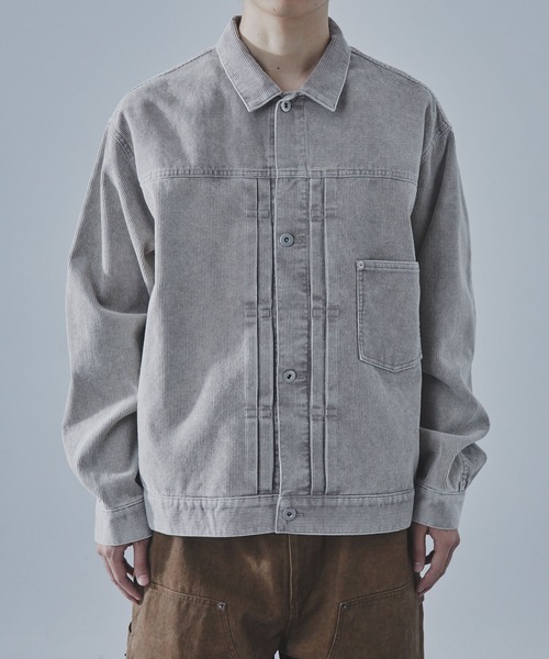 味わい深い風合いが魅力のコーデュロイトラッカージャケット。硫化染めを施したコーデュロイ素材を使用したファーストタイプのトラッカージャケット。フェード感のある色合いとヴィンテージライクな加工が、無骨さと上品さを両立。ほどよく厚みのある素材感で、秋冬のスタイリングに奥行きを加える一着。バックのタブディテールや、ボックスシルエットもポイント。季節感あるカジュアルスタイルにアクセントを添えてくれるアイテム。【 SLICK / スリック 】SLICKの製品は素材選びから始まる。 クオリティ、表情、袖を通した時の印象、その全てが調和する事を大切にしています。 そして独自のフィルターを通じてテキスタイルとデザインを最適に掛け合わせることで、 製品が持つ表情と、着た時のちょうど良さが生まれる「価値のある服」を提案。※商品画像の色味は、光の照射や角度により実物と異なる場合がございます。また表示のサイズ感と実物も若干異なる場合がございますので予めご了承ください。