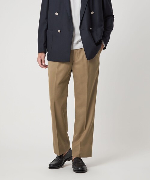 大人のスタイリングにちょうどいい汎用性の高いドレスチノ■デザイン・ほどよい太さのチノ風ドレスパンツ(スラックス)・ウエストイン1プリーツ・センタークリース入りで品のいい雰囲気・すっきりとした裾シングル仕上げ■素材・綾目の立った上品なギャバジン・こだわりの毛ブレンド素材■コーディネートブレザースタイルやカジュアルなブルゾンに好相性。リラックス感とキレイメな印象をプラスします。足元はローファーやスリッポンで大人っぽくまとめると◎。============================裏地:膝裏あり透け感:なし伸縮:なし光沢感:ややあり機能性:防シワ(着用時シワになりにくい)ケア方法:洗濯機洗い可============================【注意事項】※商品に「取り扱い上の注意書き」、「洗濯表示」がございます場合は、使用前に必ずご確認ください。※商品画像は、光の当たり具合やパソコンなどの閲覧環境により、実際の色味と異なって見える場合がございます。あらかじめご了承ください。※商品の色味の目安は、商品単体の画像をご参照ください。店舗へお問い合わせの際は、全国のgreen label relaxing各店舗まで下記の品名/品番をお申し付けください。品名:DC TW GABARDINE 1P 品番:31141991705