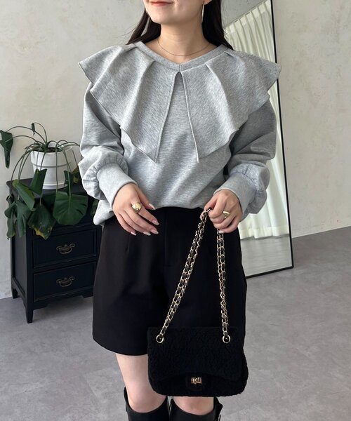 大人可愛く楽しむフリルスウェット●カジュアルになりがちなスウェットもフリルで大人可愛く●大きな襟で顔周り華やかに●緩すぎず部屋着っぽくならないサイジング●合わせるボトムスを選ばず着回し抜群ですスウェット/フリル/大人可愛い--------------------------------------------------------------生地の厚さ:普通伸縮性:なし透け感:なし裏地:なし洗濯方法:ご自宅で洗濯可--------------------------------------------------------------※商品画像はサンプルにて撮影をしておりますので、実際の商品とは色味や仕様・サイズ等が異なる場合がございますのであらかじめご了承ください。※商品のお取り扱いに関しましては、商品に付属のアテンションカード、洗濯ネームをご覧ください。※撮影場所やお使いのモニター環境により若干お色味が異なる場合がございます。特にロケの撮影では明るく見える傾向にございます。 ※サイト上ではフリーサイズの表記ですが、商品タグにはMサイズと表記されている場合がございます。その場合、ワンサイズでのご用意となりますのでサイズミスなどではございません。詳しいサイズはサイズスペックをご確認いただきますようお願い致します。※サイト上でのカラー名とお届けした商品に記載されているカラー名が異なる場合がございますので予めご了承ください。<返品・キャンセルについて>・着用・洗濯後の返品は致しかねます。・商品到着後、着用前に商品を確認して頂きますようお願い致します