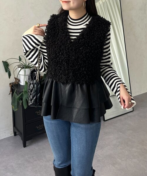 甘さと辛さを合わせた大人のファーベスト●レザーのペプラムがアクセントに●ペプラムシルエットで体型カバーばっちり●ふわふわのファーが肌触り◎●フロントのボタンはホックボタンですファー/ベスト/体型カバー/大人カジュアル--------------------------------------------------------------生地の厚さ:普通伸縮性:なし透け感:なし裏地:なし洗濯方法:ご自宅で洗濯不可--------------------------------------------------------------※商品画像はサンプルにて撮影をしておりますので、実際の商品とは色味や仕様・サイズ等が異なる場合がございますのであらかじめご了承ください。※商品のお取り扱いに関しましては、商品に付属のアテンションカード、洗濯ネームをご覧ください。※撮影場所やお使いのモニター環境により若干お色味が異なる場合がございます。特にロケの撮影では明るく見える傾向にございます。 ※サイト上ではフリーサイズの表記ですが、商品タグにはMサイズと表記されている場合がございます。その場合、ワンサイズでのご用意となりますのでサイズミスなどではございません。詳しいサイズはサイズスペックをご確認いただきますようお願い致します。※サイト上でのカラー名とお届けした商品に記載されているカラー名が異なる場合がございますので予めご了承ください。<返品・キャンセルについて>・着用・洗濯後の返品は致しかねます。・商品到着後、着用前に商品を確認して頂きますようお願い致します