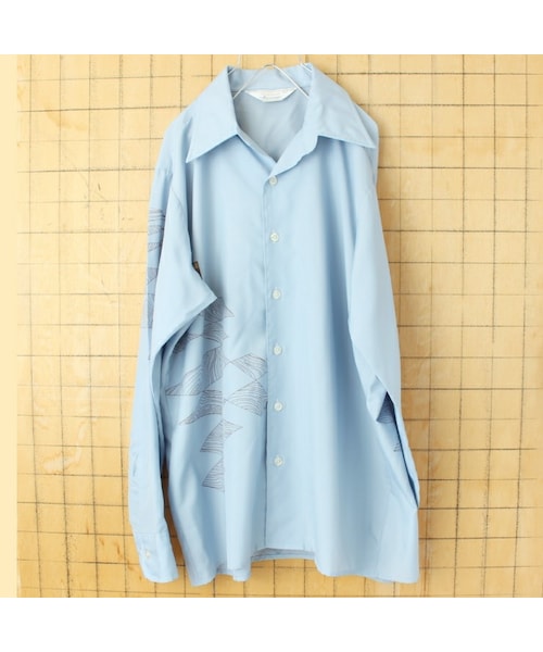 70s 80s USA ARROW 長袖 ライトフランネル オープンカラーシャツ ライトブルー メンズL アメリカ古着です。 70年代から80年代頃のARROWシャツです。 サラサラとした軽い肌触りの生地感です。 カラーはライトブルー、フロントの右側から右袖、バックにプリントが入っています。 裾はフラットのボックスシルエット、70年代頃の象徴の大き目の襟がポイントです。 メンズLです。 詳細サイズにてご確認ください。 当店にてクリーニング済みです。 【表記サイズ】 L 【素材】 記載なし 【採寸サイズ】 肩幅:48cm 身幅:61cm 着丈:76cm 袖丈:63.5cm